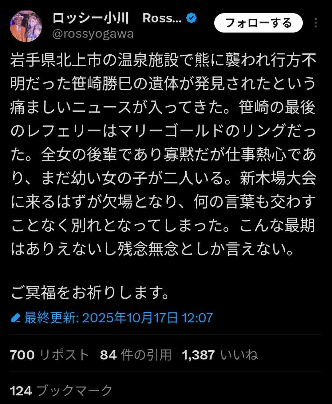 女子プロレスのレフリーが熊に食われるとかどんな漫画の世界線やねんマジで草生えるわ