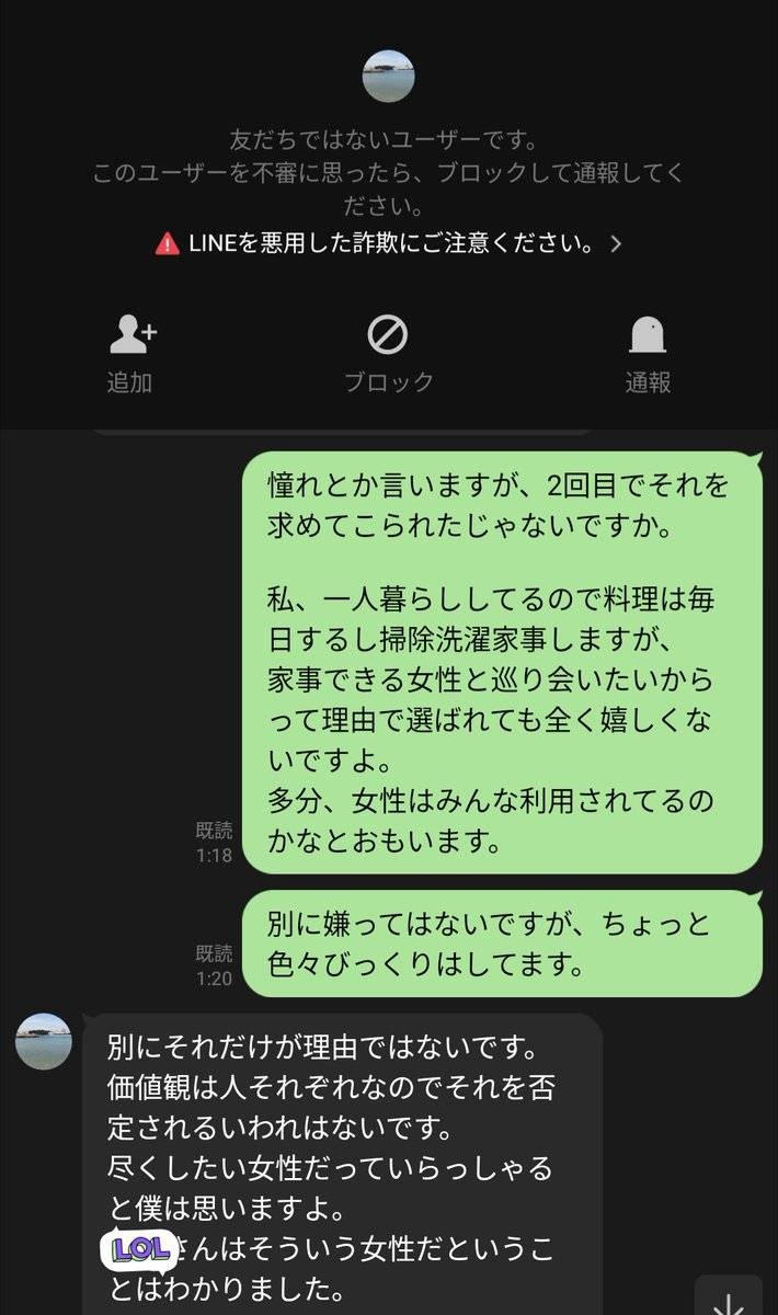 こう言うのとマッチングしてる時点で実態は低スペ同士の地獄のようなやり取りなんだろうなとしか思えん