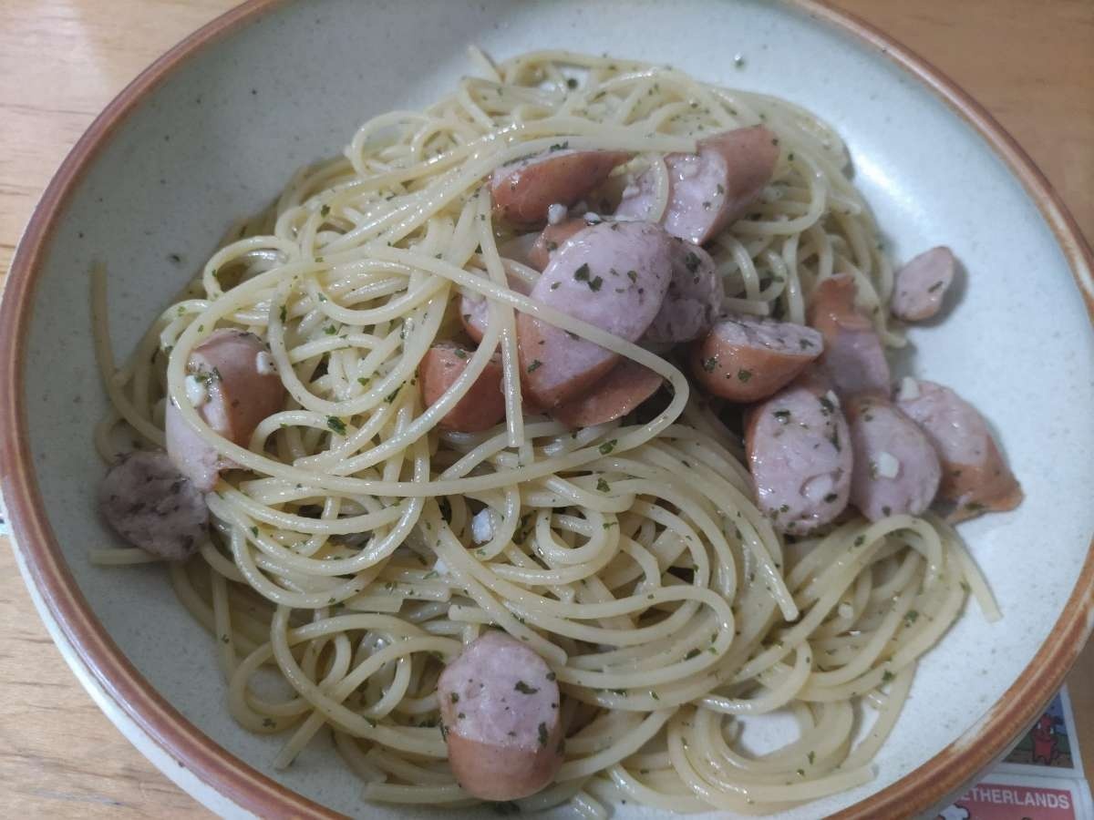 ペペロンチーノ風ウインナーのパスタ
