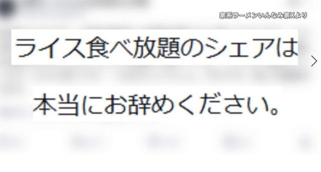 家系ラーメン100円ライス食べ放題(ヽ´ん`)(ヽ´ん`)「シェアするんモ!」問題になる