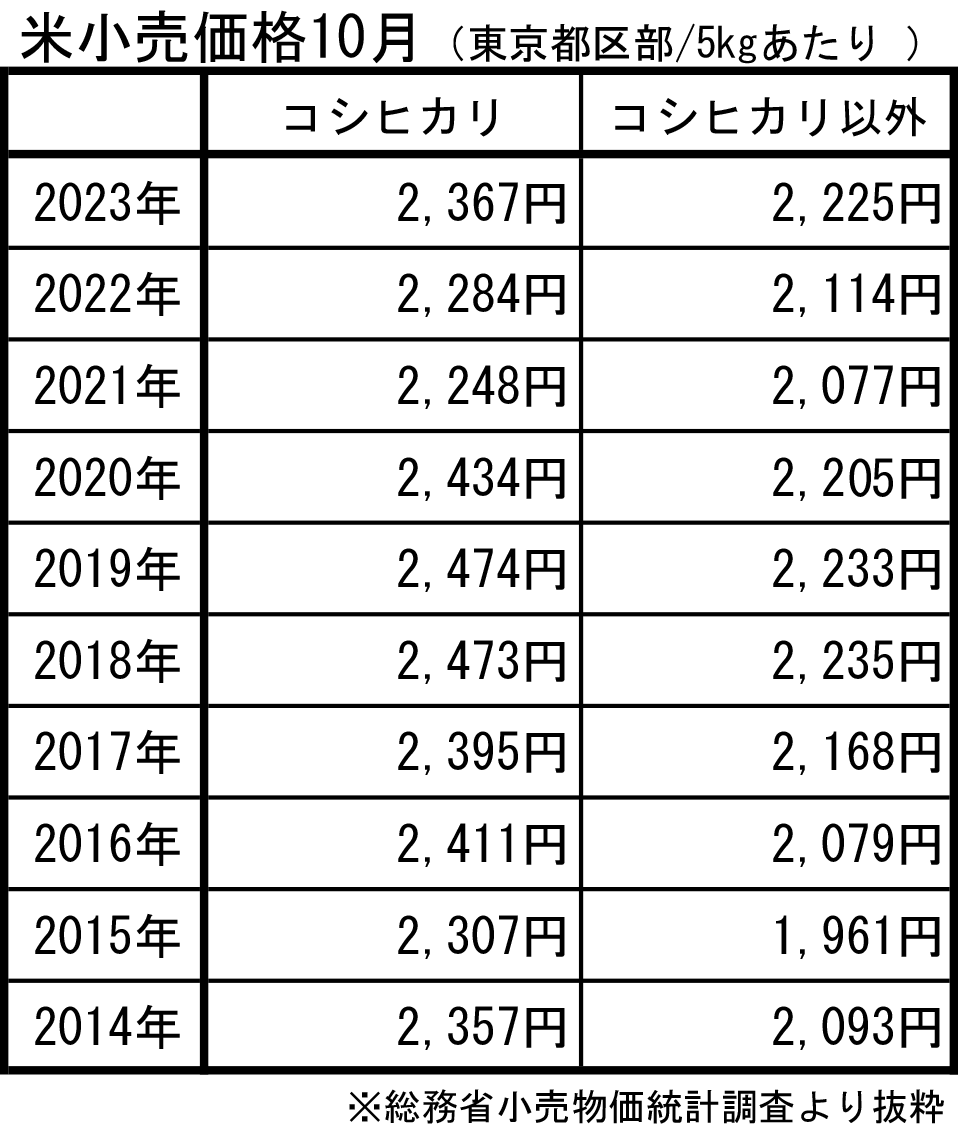 減価償却+輸送費は国負担なのに数年前の新米と同じ値段