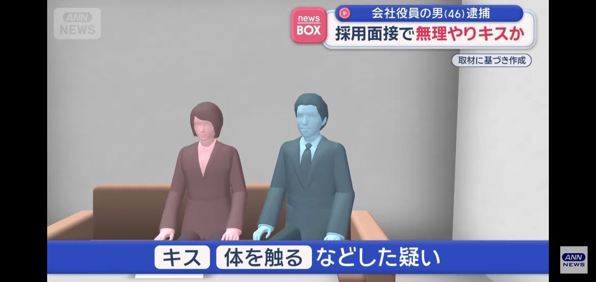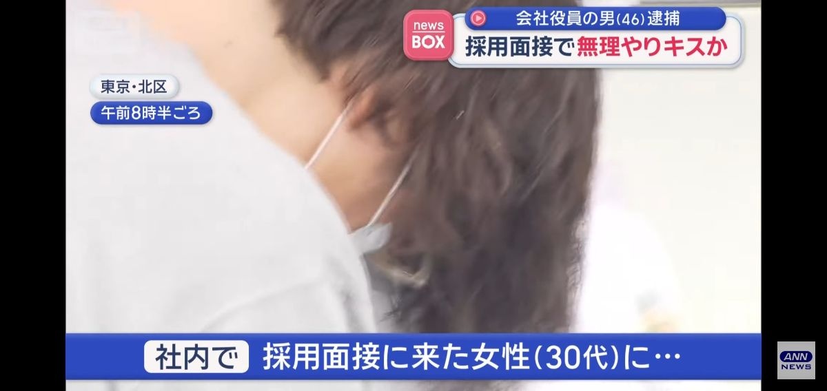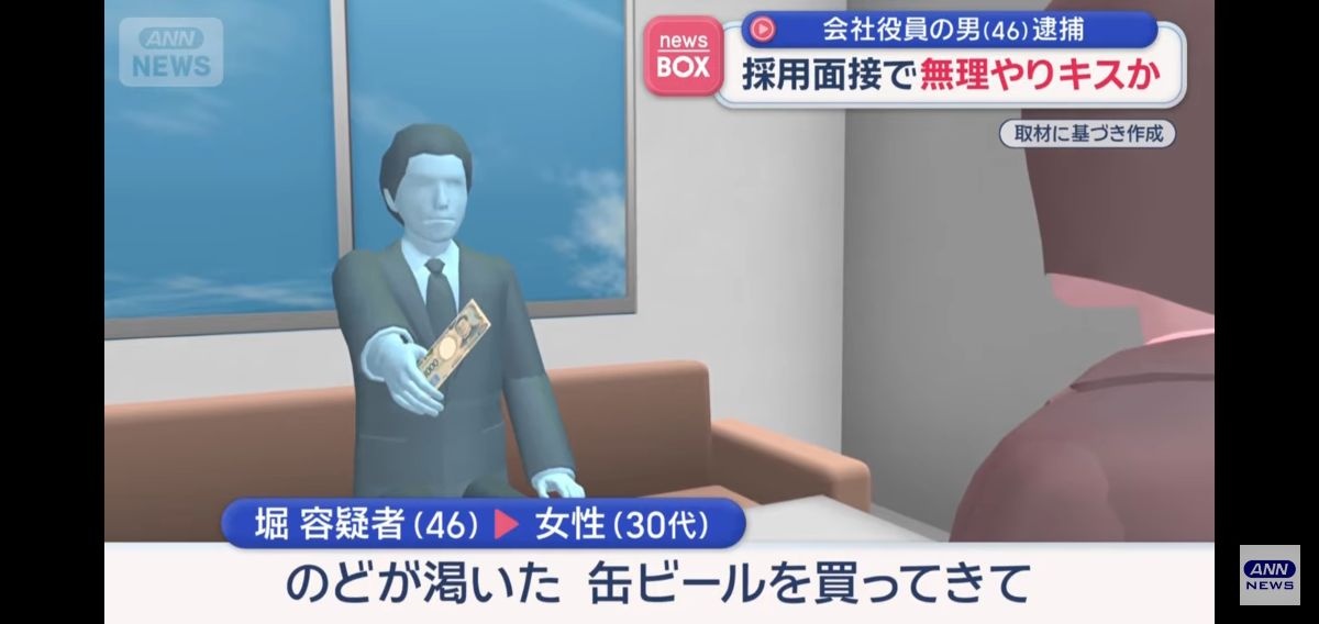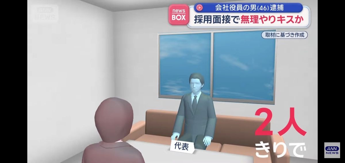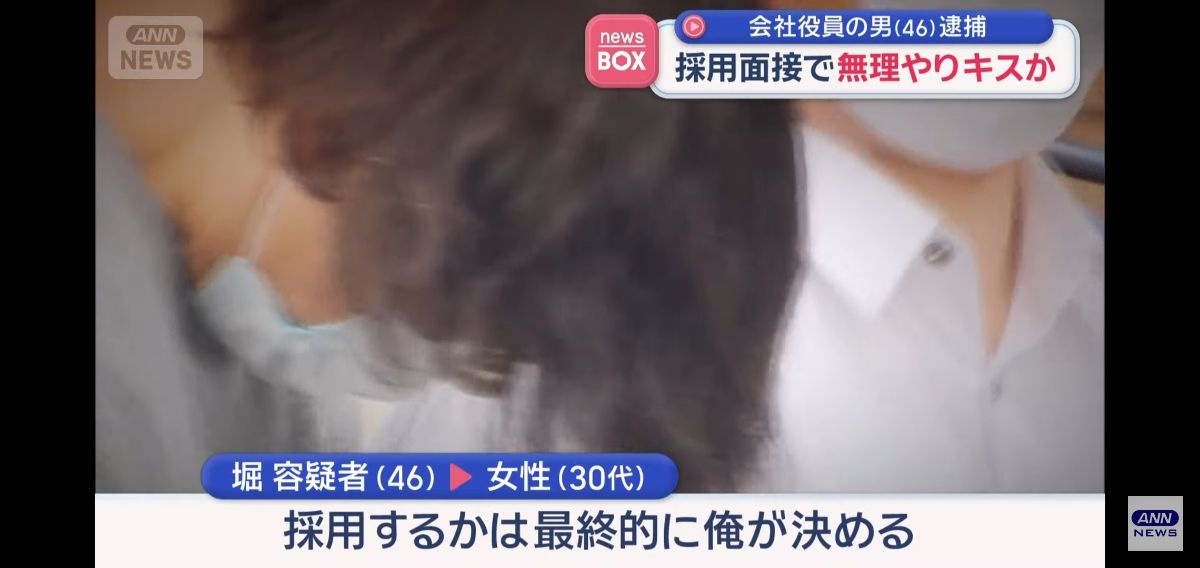 就職面接、社長が朝から晩まで二人きりで面接し途中ビールを買わせて強引にキスして「採用は俺が決める」と言い放ち逮捕される