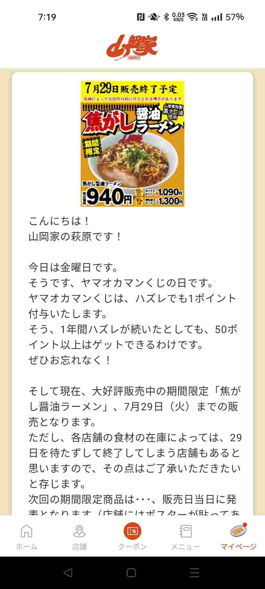 山岡家の限定でうまいと思うのホルモン味噌だけやわ