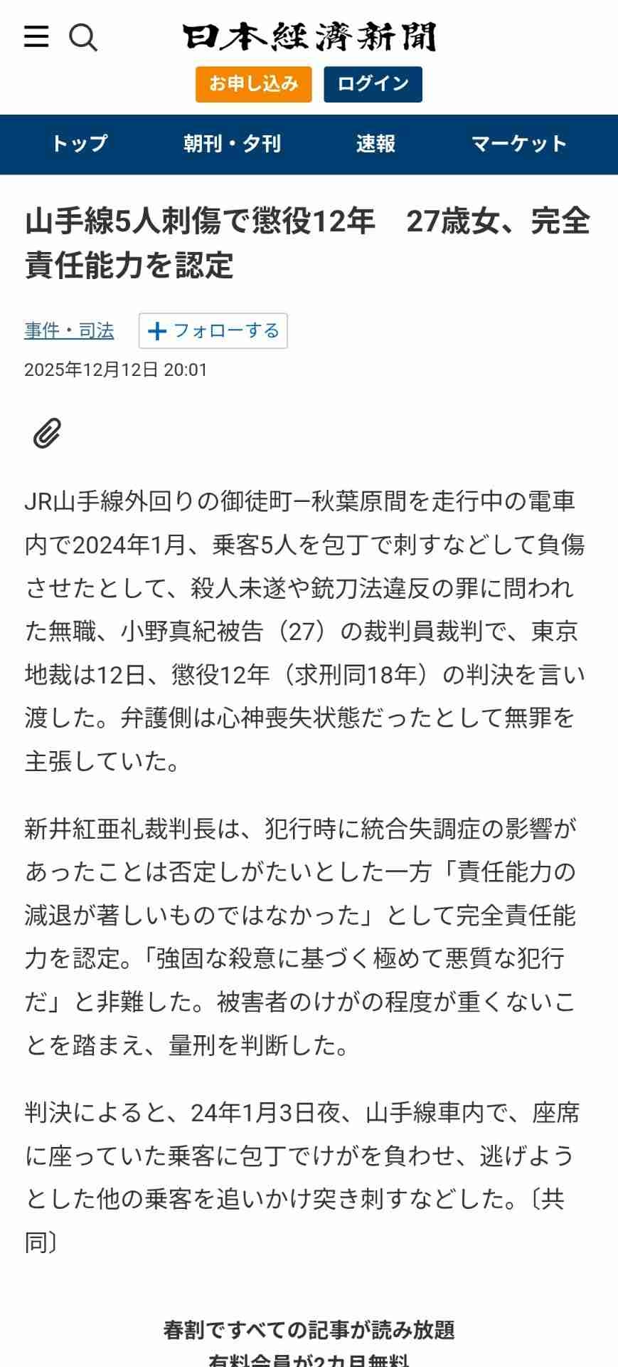完全責任能力は心神喪失や心神耗弱とは認められないというだけで、影響があれば被告に有利な情状にはなるで - 5 : 2026/03/22(日) 20:58:41.301 ID:7EEZNLEhQ