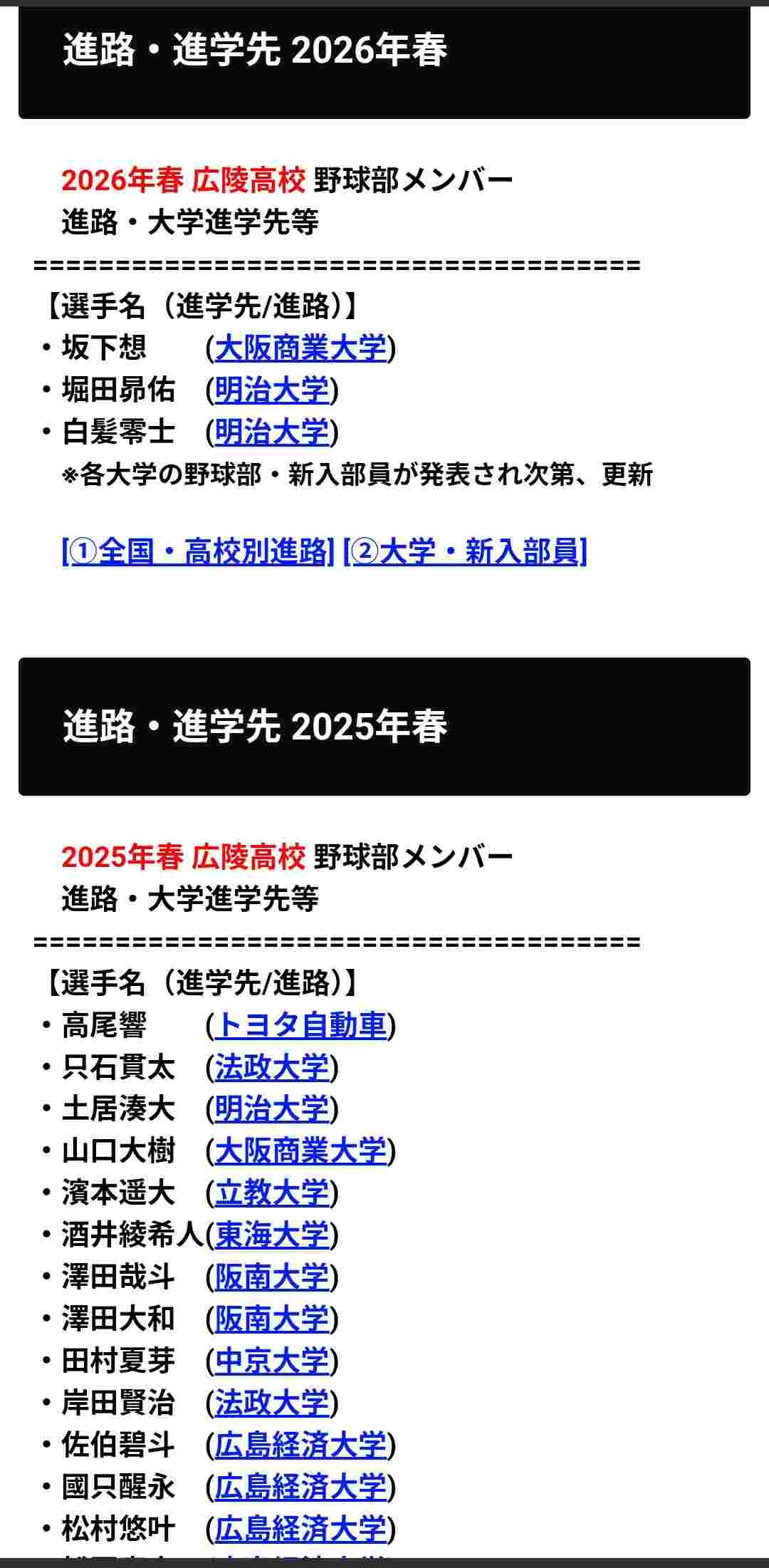 ワイの広陵の従兄弟が広経行くけど何で載ってないんや?
