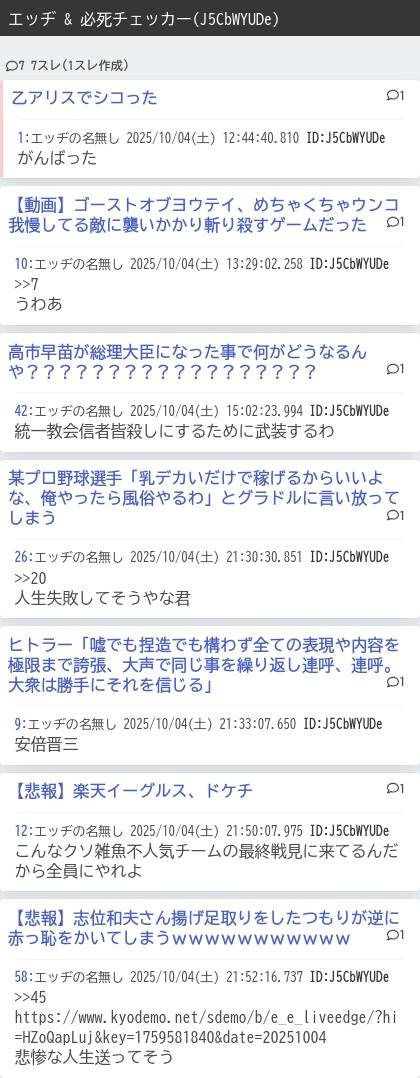 殺害予告してるやんこいつ - 94 : 2025/10/04(土) 21:57:23.340 ID:TDFcgwj6d