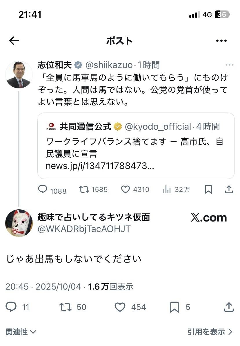 そういう言葉狩りするなら、出馬も人を馬扱いしてるよねって返しやで - 51 : 2025/10/04(土) 21:51:42.389 ID:aXcBWYACQ