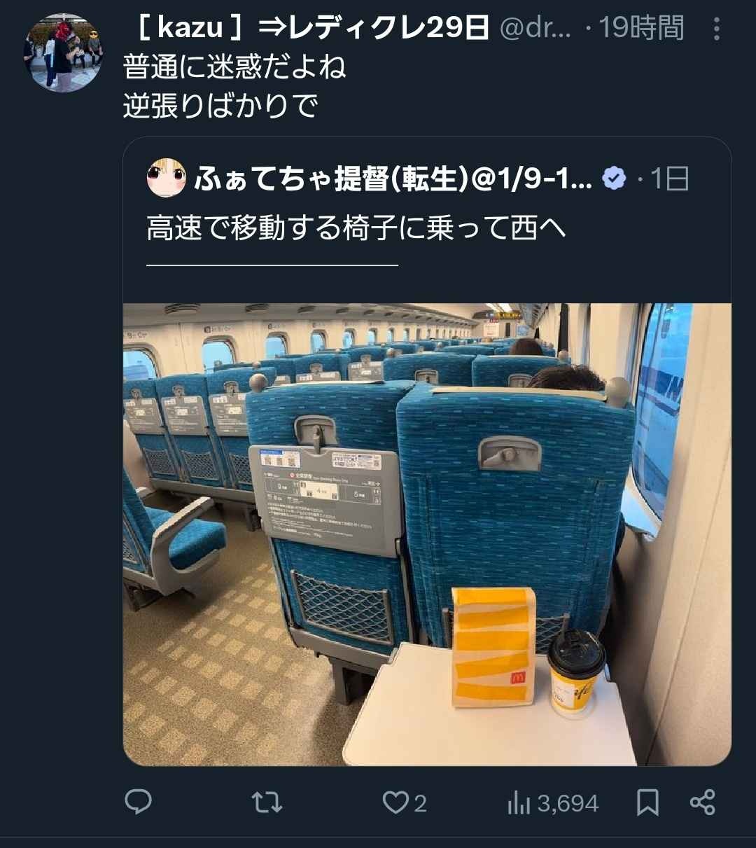 - 新幹線でマクド食うだけでバズるとかチャンスじゃんね逆に
