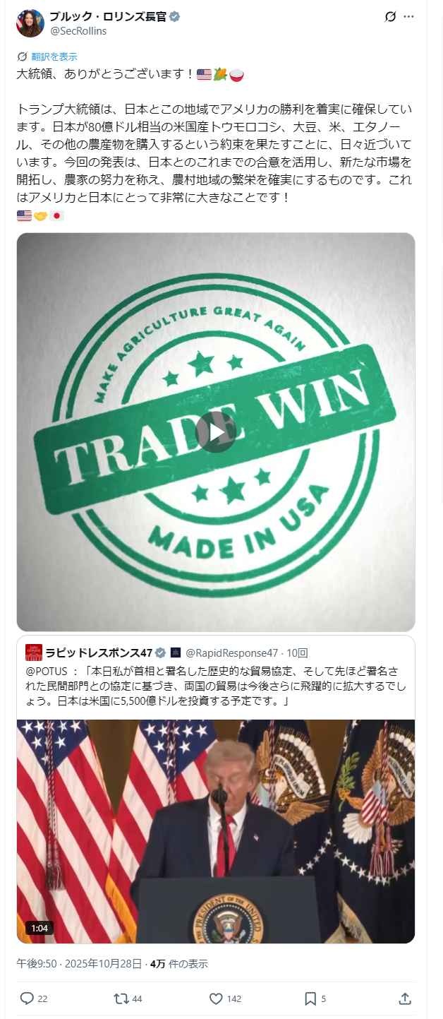 米と牛肉で話つけとけよ - 39 : 2025/10/29(水) 07:57:15.142 ID:PdoG.7gr0