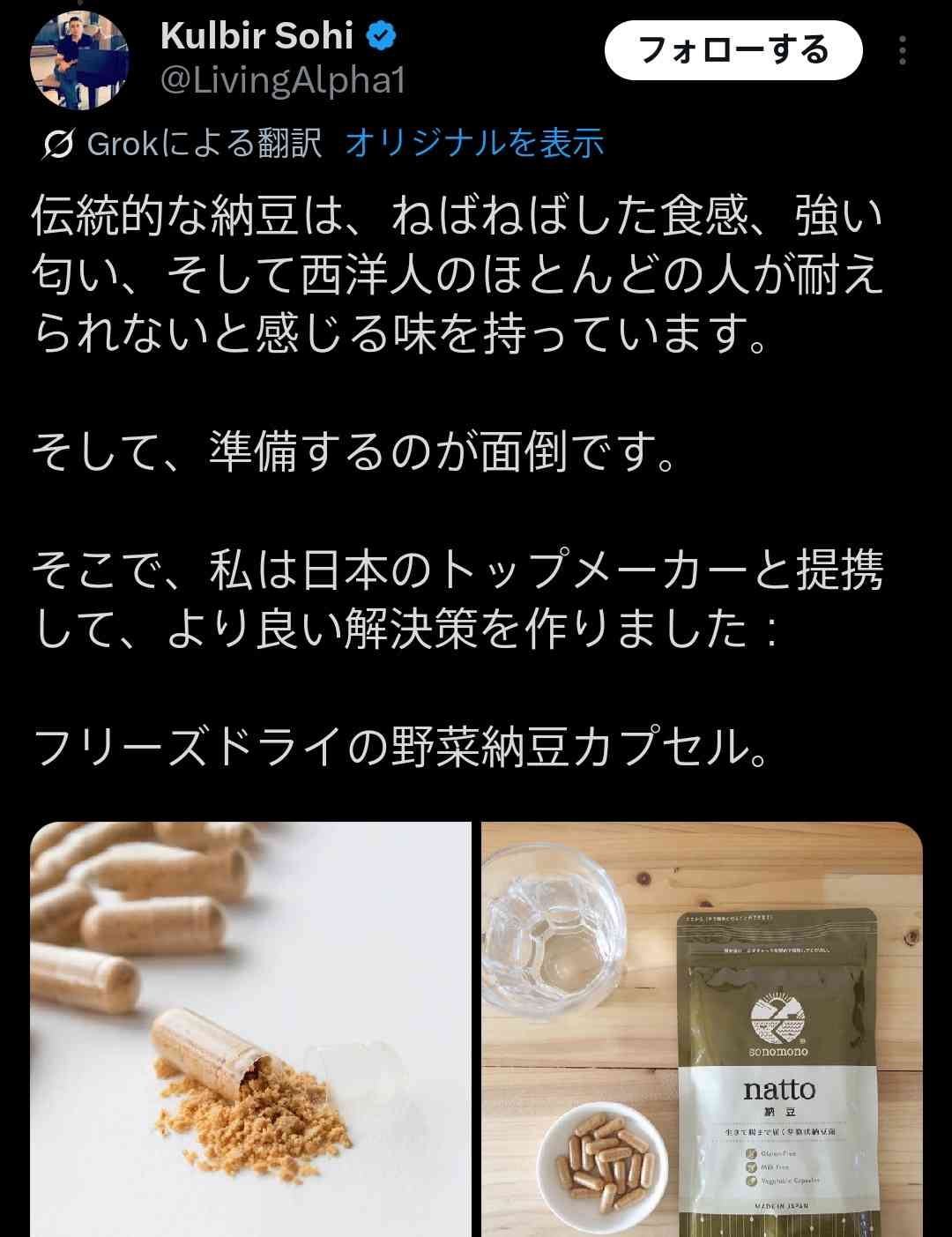 そこでこの納豆カプセル健康食品!っていう商売の前フリなんだよね
