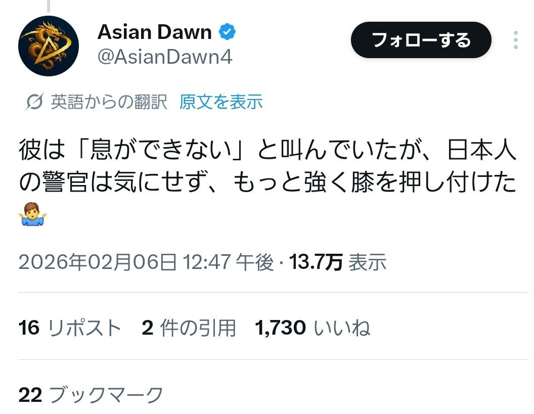 アジア人の場合はただの逮捕だ - 292 : 2026/02/07(土) 09:02:59.041 ID:twMLP07Nt