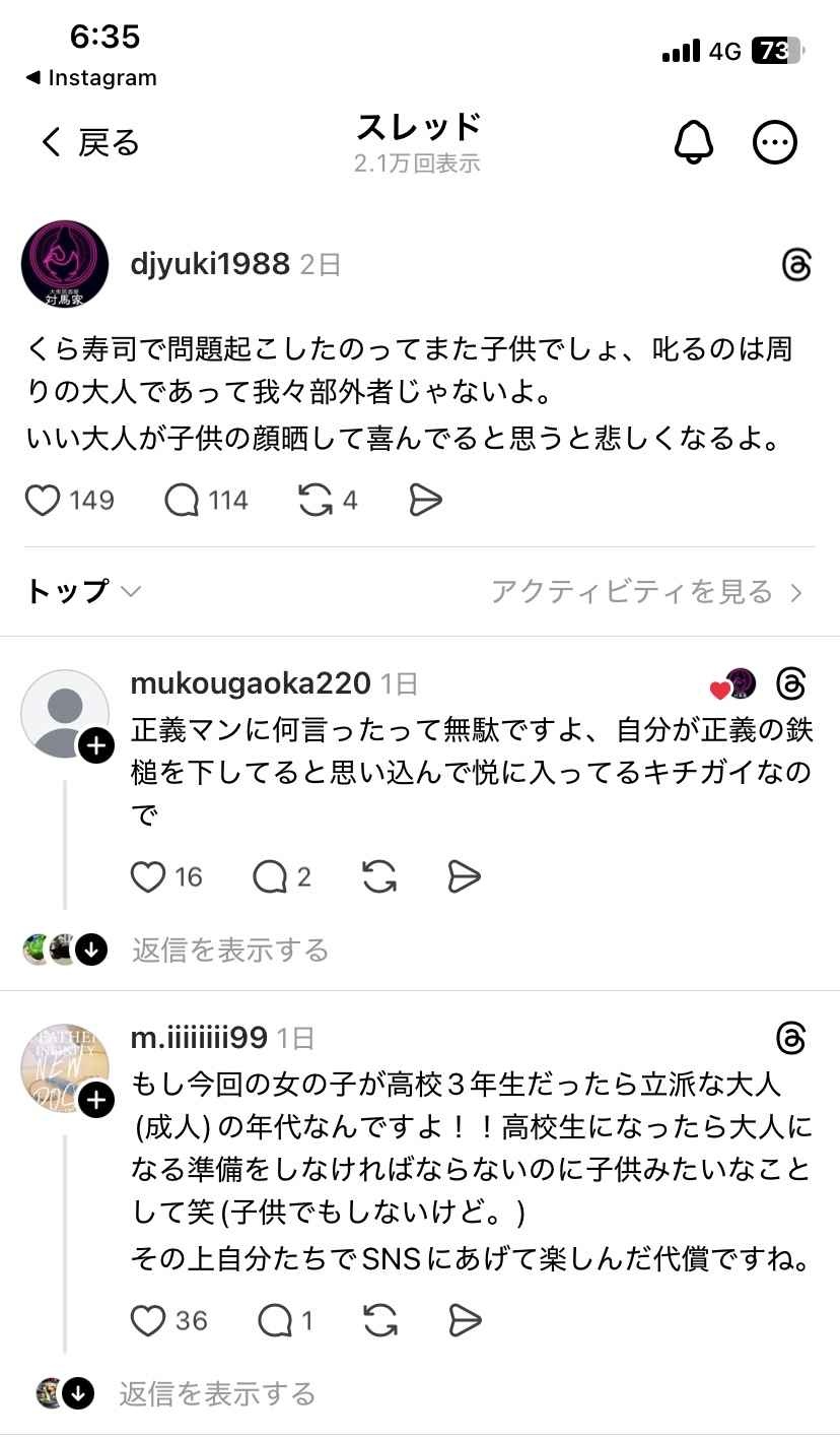 日本人正論「くら寿司で問題起こしたのって子供でしょ?叱るのは周囲の大人であって部外者が顔を晒すとか違くない?