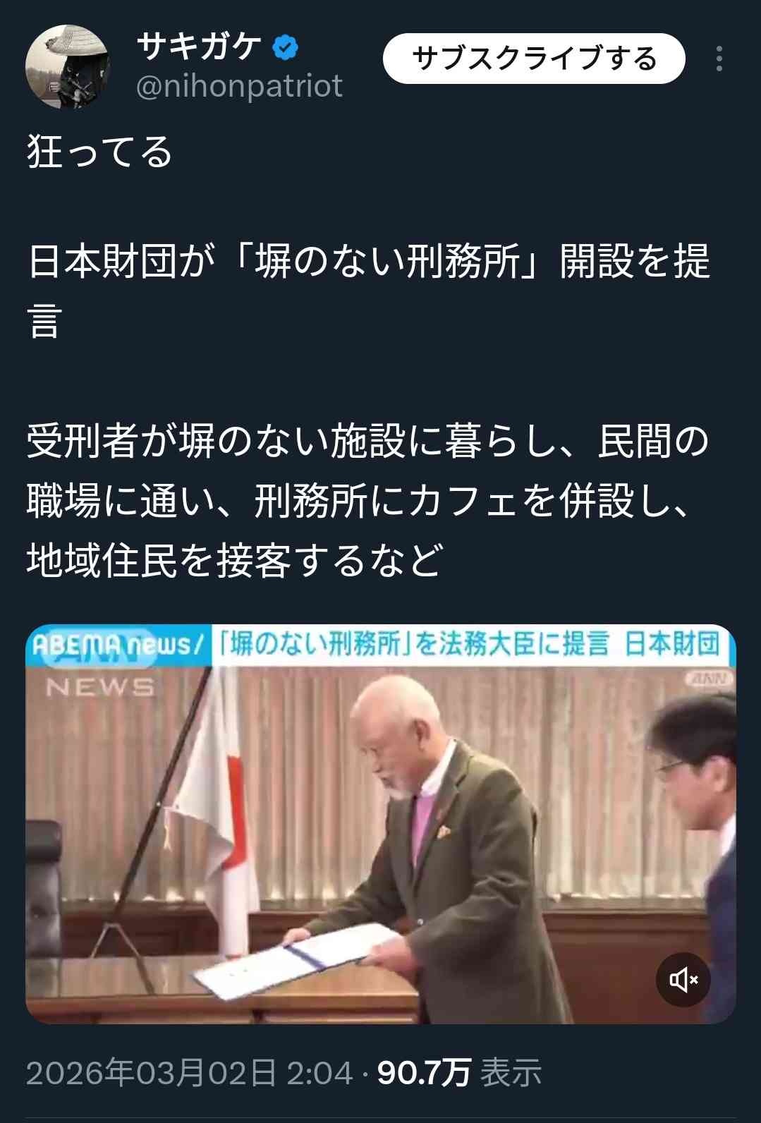 日本財団「壁のない刑務所を作れ。受刑者は近隣の職場で働き、刑務所にはカフェを作って地域民を受刑者が接客する」