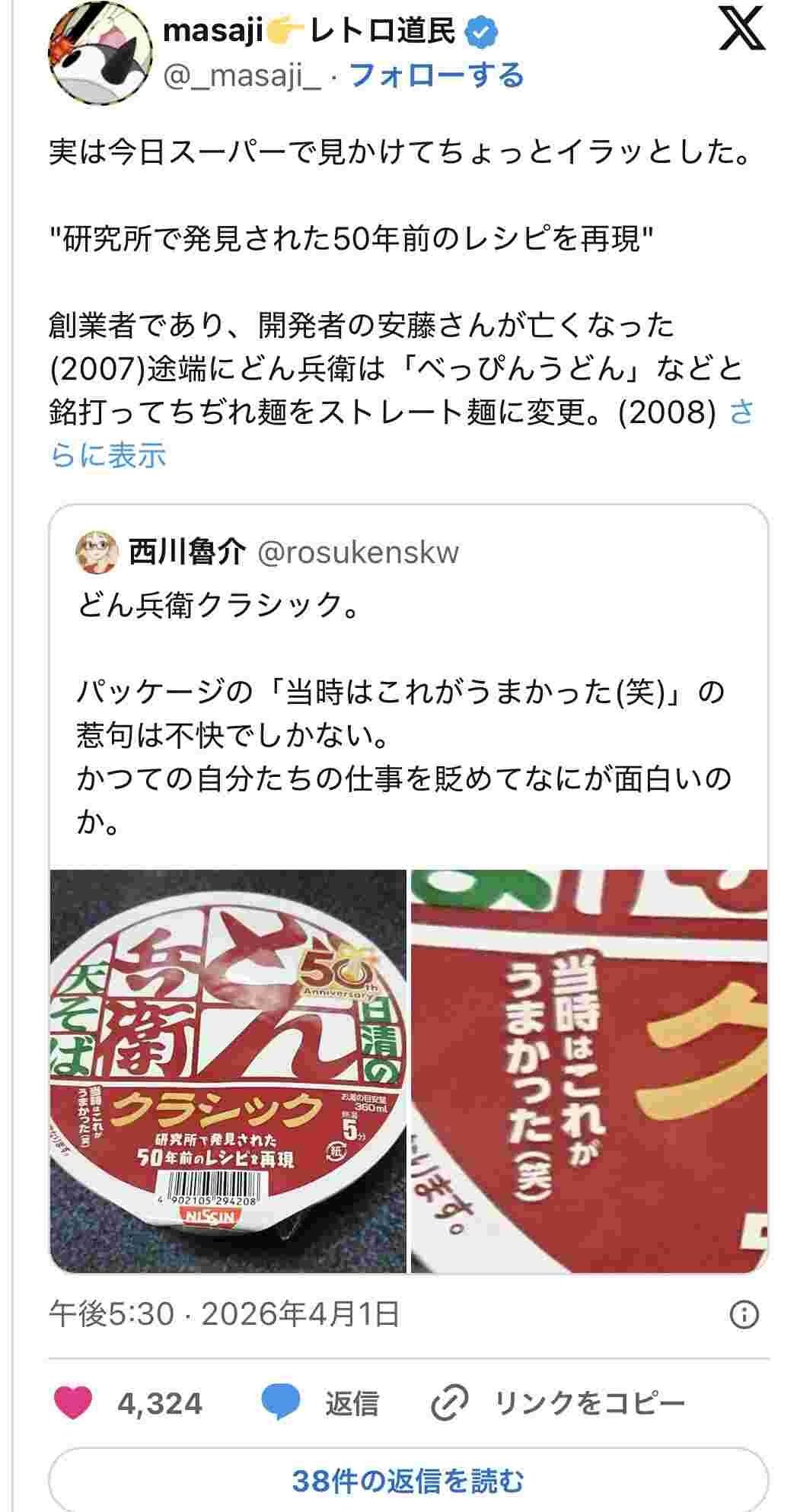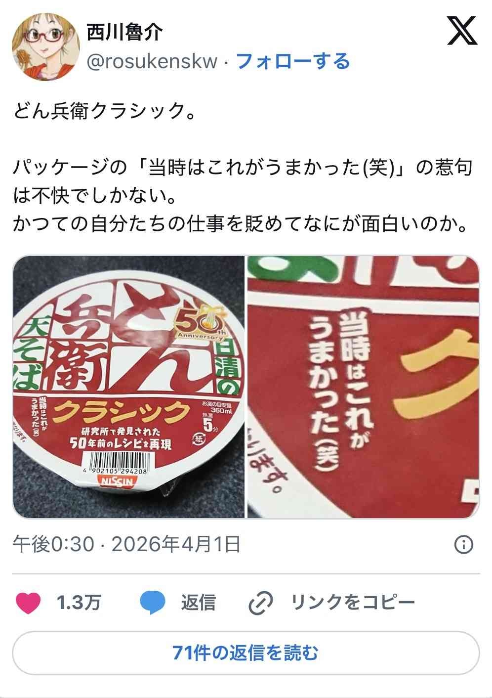 過去のどん兵衛を見下してる感じするからあかんのちゃう - 81 : 2026/04/02(木) 15:39:37.246 ID:/OM8pzlWB