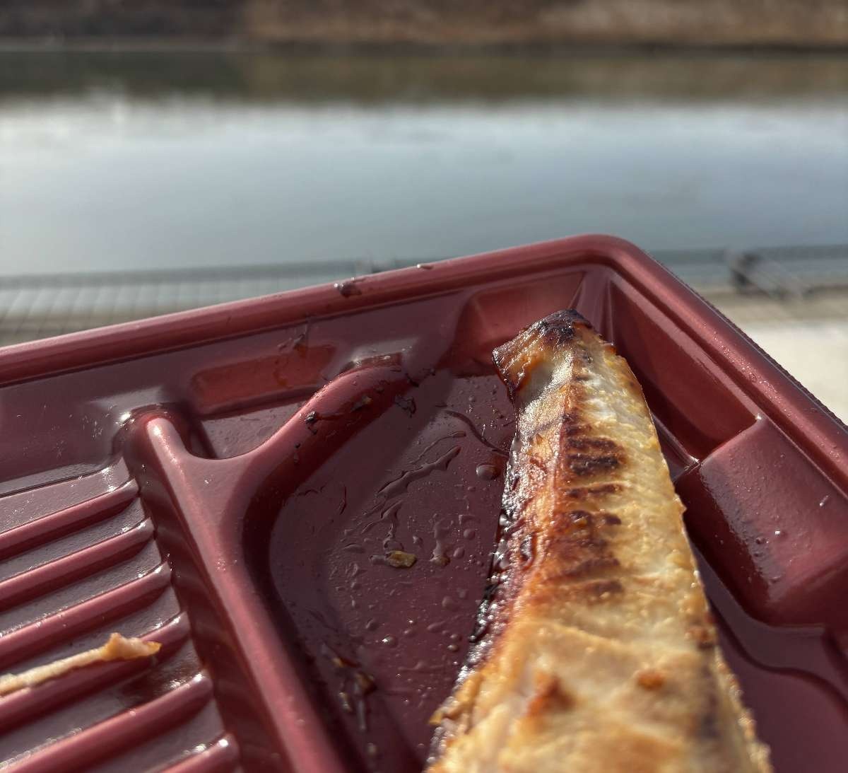 暇だから川で弁当食ってる