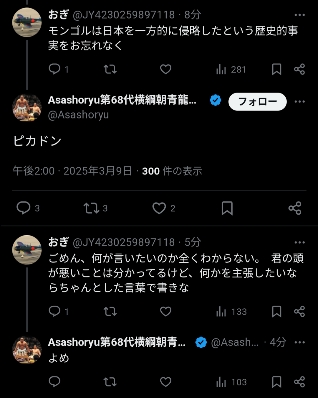 モンゴルがどうのこうのの時点で一線超えてるからな