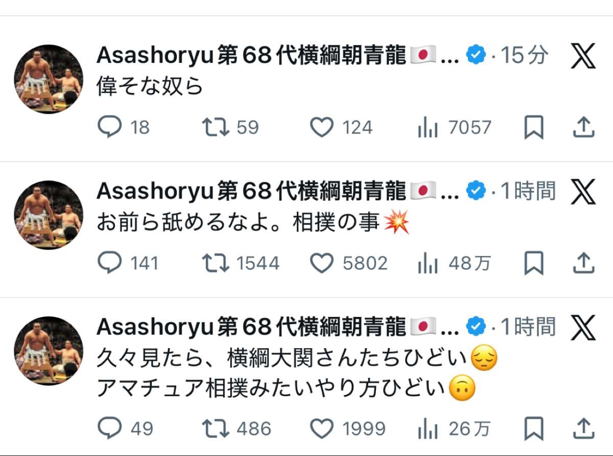 横綱と大関にブチ切れてる模様
