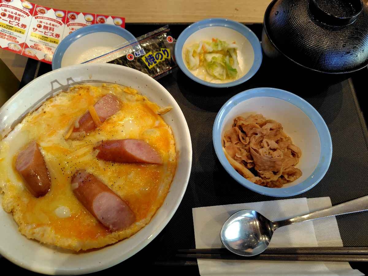 松屋のソーセージ玉子丼、食べてきたンゴwww