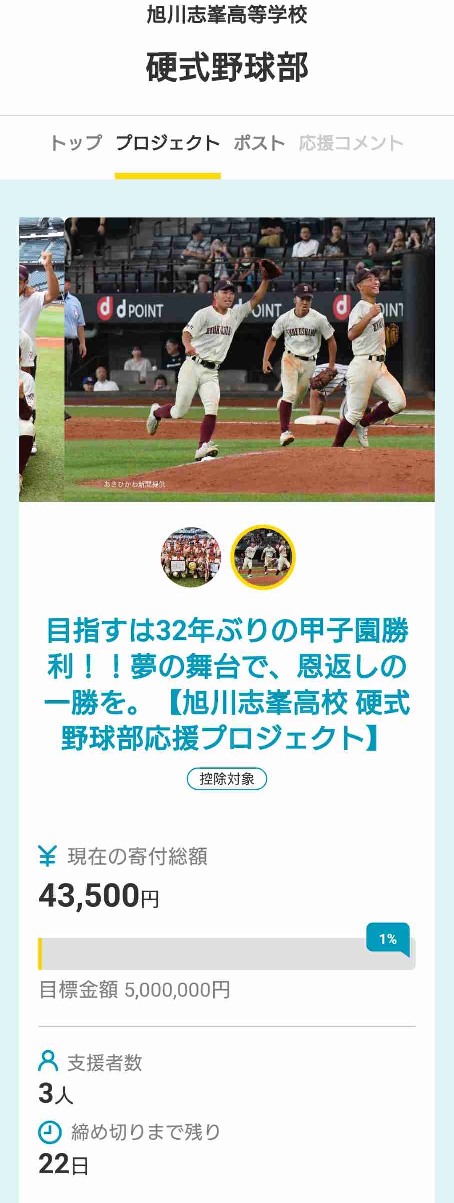 - 旭川は寄付金どれくらい集まってたんだろう