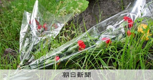 長男が倒れていた川の土手には花が手向けられていた=2025年5月14日午後6時45分、広島市中区、小林晴香撮影暗転したのは、今年の正月だった。
