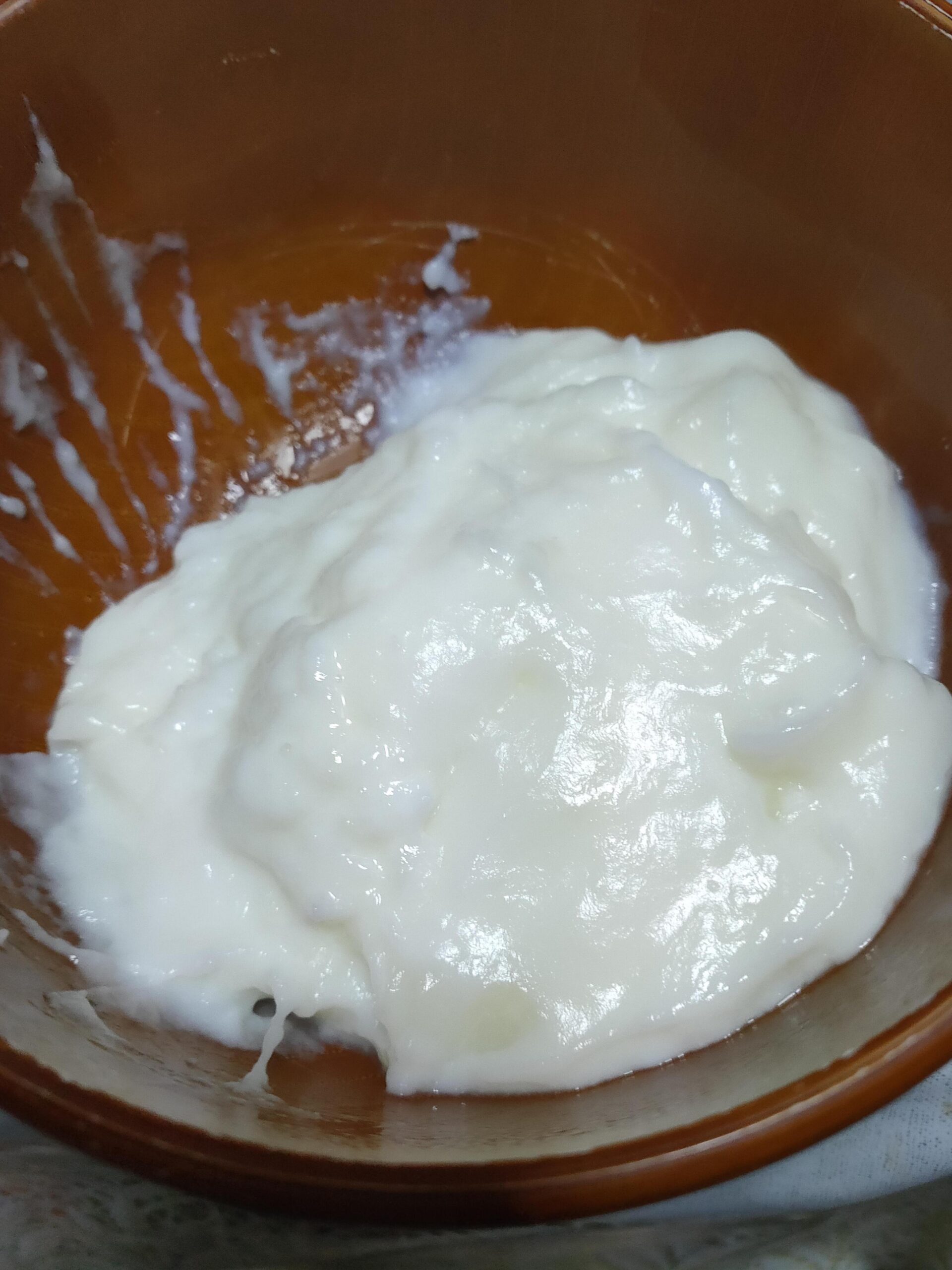 - タマゴ足して片栗粉を小麦粉に変えてカスタードクリーム風なもの作った方が美味しそう