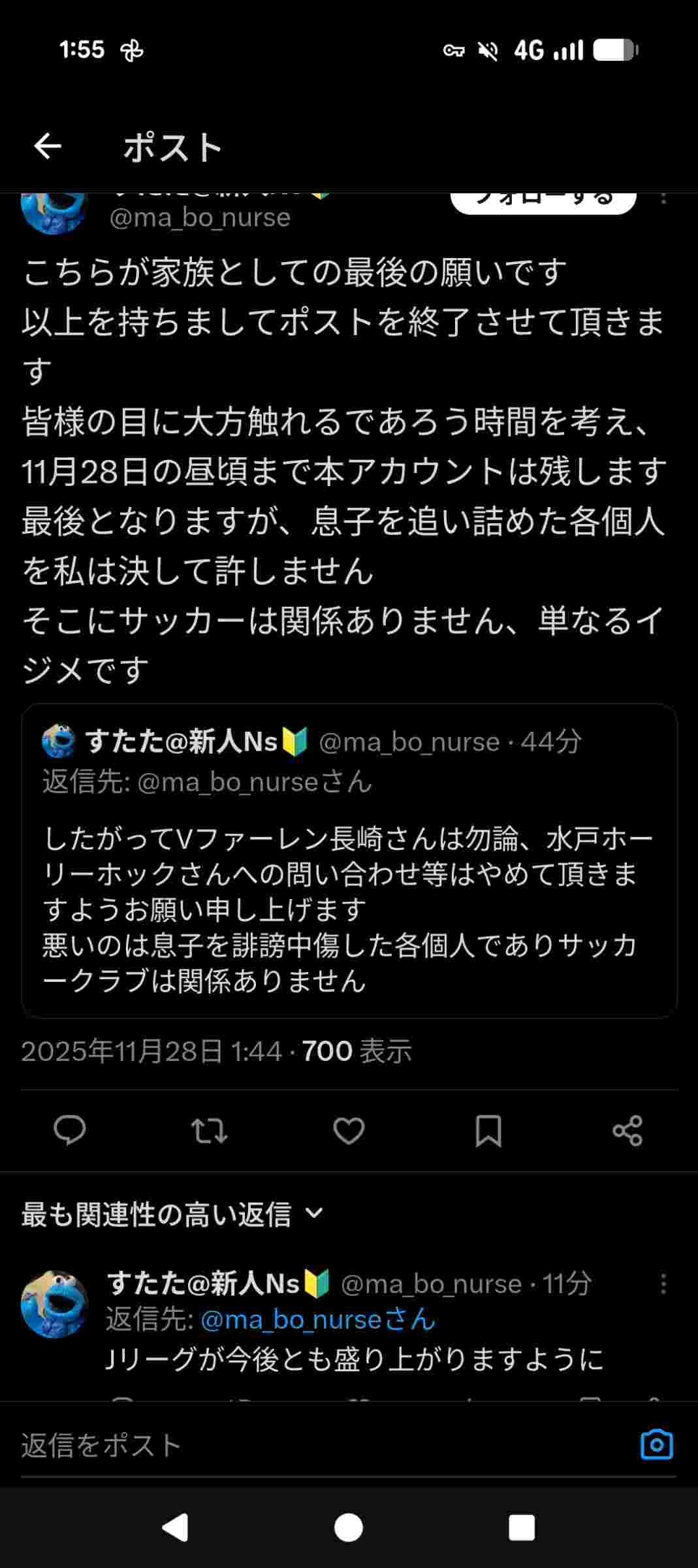 もちろん水戸側も同様に声明出さないといけないレベル - 25 : 2025/11/28(金) 02:01:53.186 ID:N8Y44mPPq
