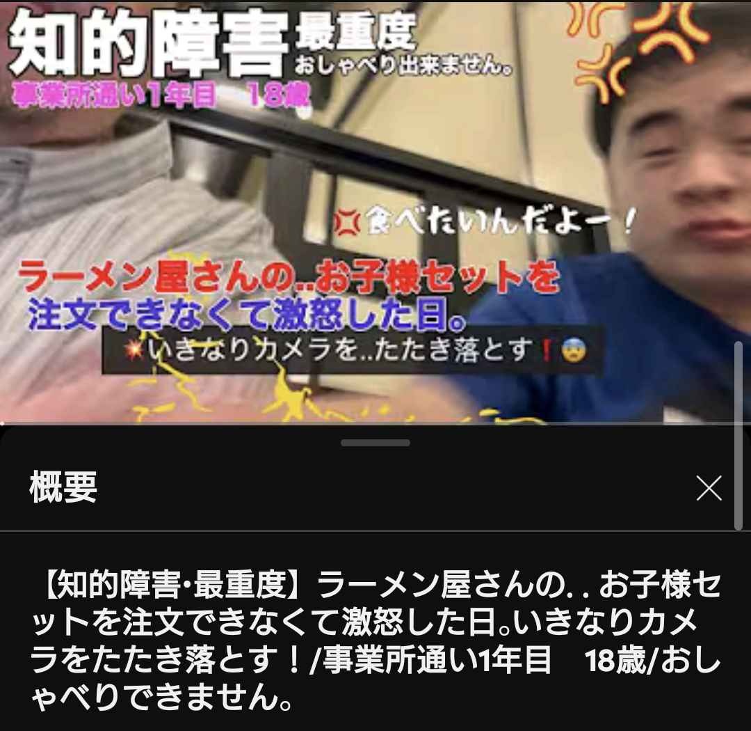 知的障がい者YouTuberのうーちゃん、ラーメン屋でお子様セットが食べられずに激怒して暴れまわるwww