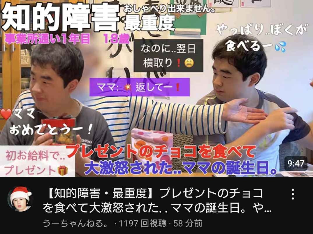 知的障がい者YouTuberの‘‘うーちゃん’’母親にプレゼントしたチョコを自分で食べてしまうwww