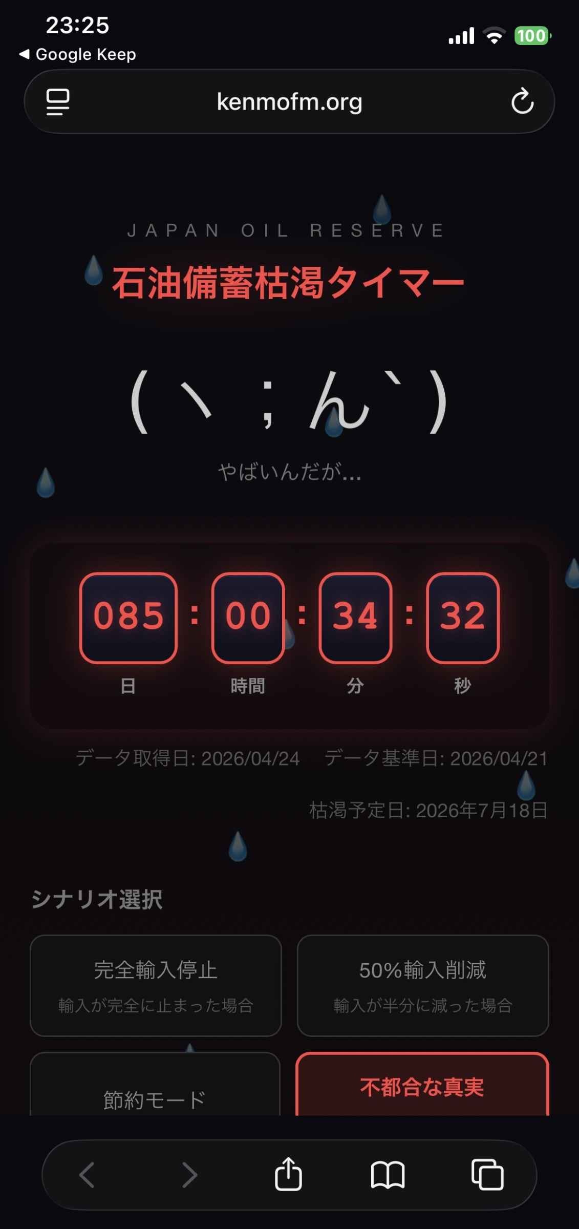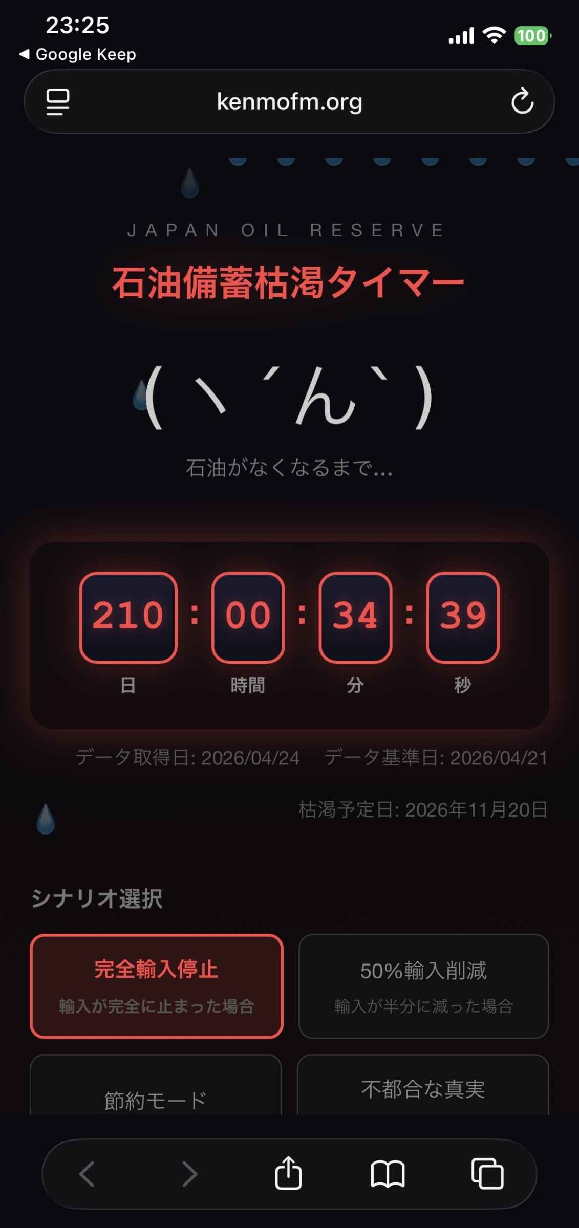 - 実際絶対使えない分(インフラや国防上必要分)除くとあと何日分あるんだろうな