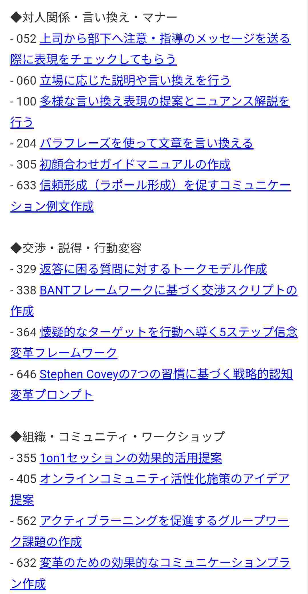 - 上司と部下の対人関係プロンプトまで充実してる
