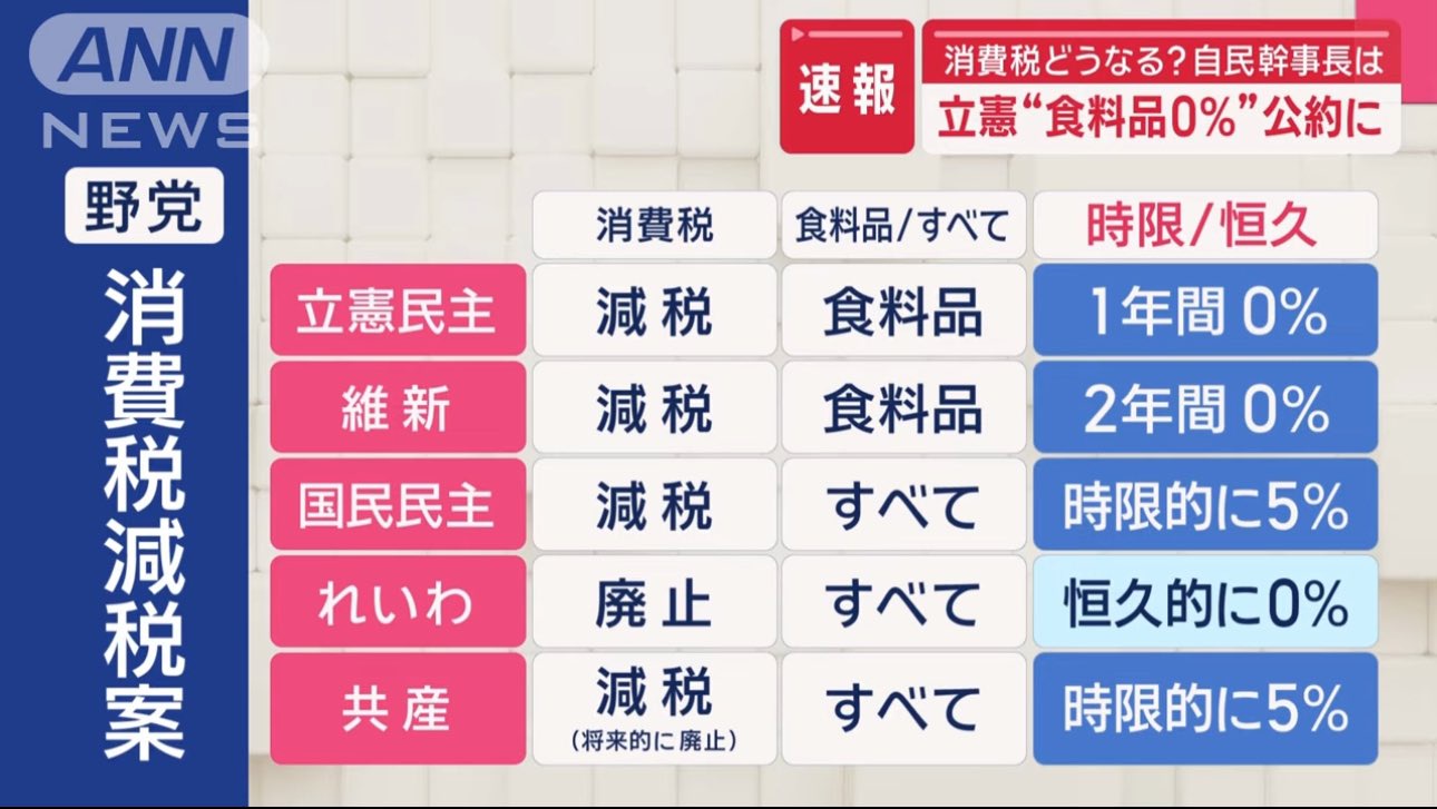 立憲民主「食料品消費税を1年間0%、その後消費税還付制度に移行する」