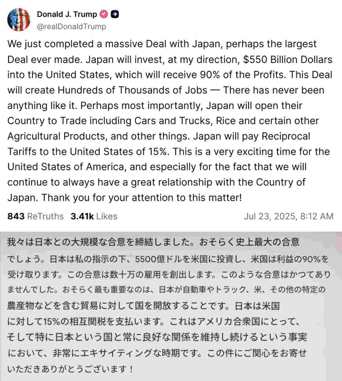 いやトランプが米も15%になるって書いてるやん - 28 : 2025/07/23(水) 09:20:52.41 ID:yMc7ZJsp0