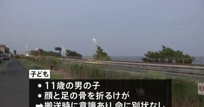 警察によりますと、子どもは11歳の男の子で、顔と足の骨を折るけがをしましたが、搬送時には意識があり、命に別状はないということです。