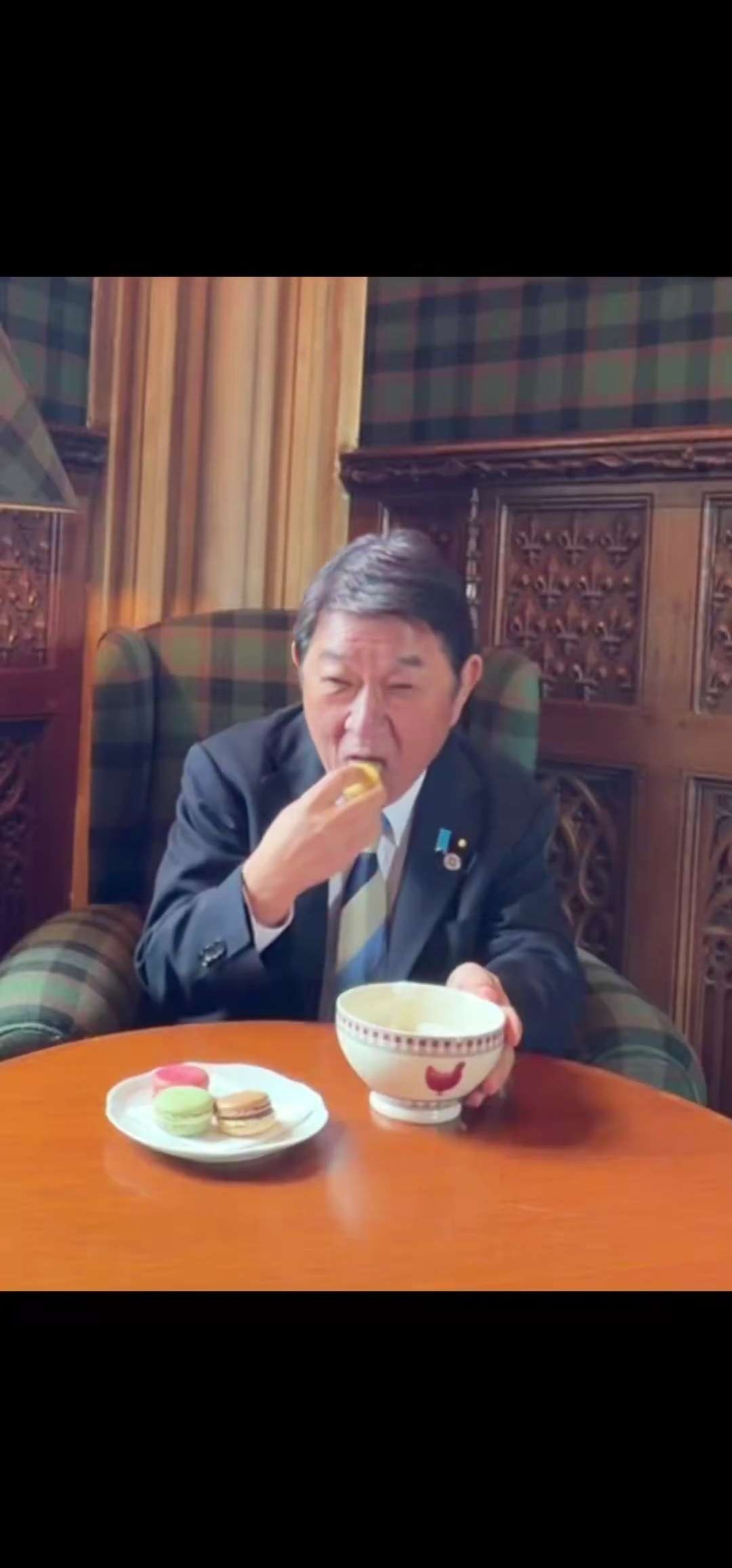 茂木外務大臣「ボクは今フランスでホットカフェオレとマカロン食べてホッとしてま~す」大炎上