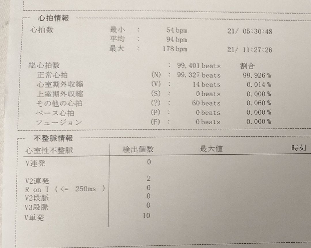 心室性期外収縮とかなら割と誰でも出るから心配せんでええやろ