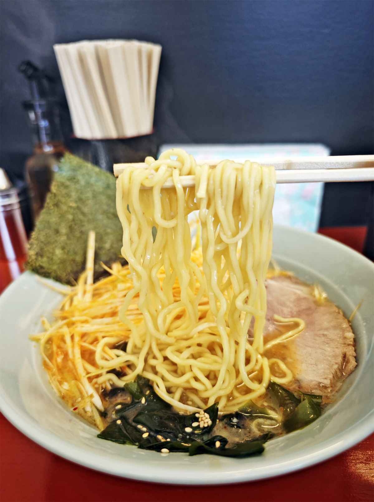 背脂少々ライトめなスープに塩味強めのカエシが効いてます。