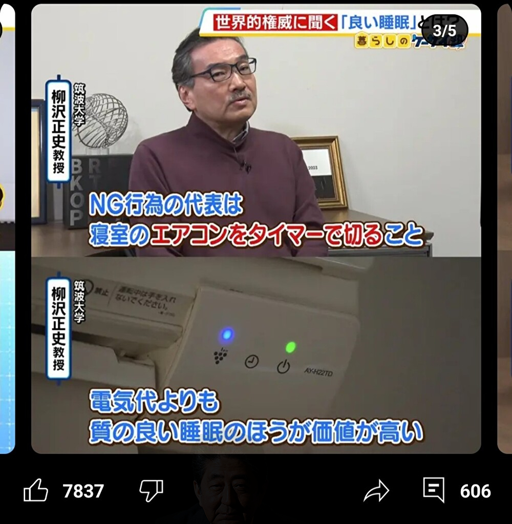 識者「寝るときエアコンタイマーつけるな!睡眠の質>電気代」