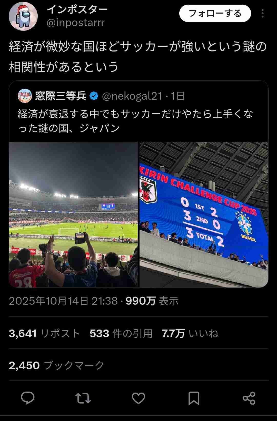 フットボールの強さこそ国力 - 41 : 2025/10/16(木) 19:39:06.077 ID:KZHCQtwCd