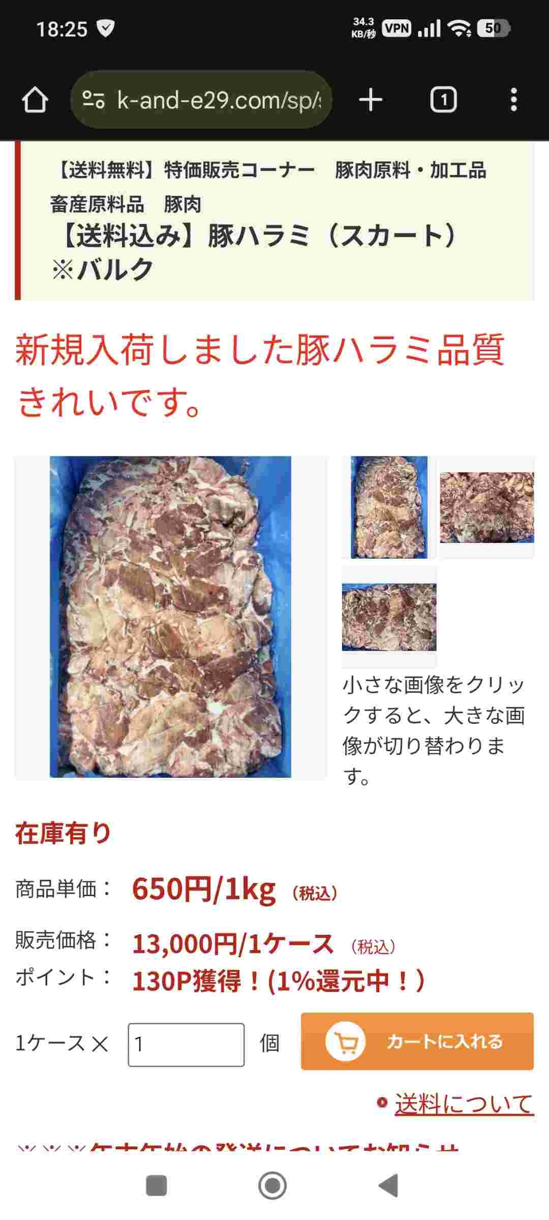 豚肉(ハラミ)20kg13000円 100g65円送料込み これを買って焼肉三昧じゃ🐷🥩