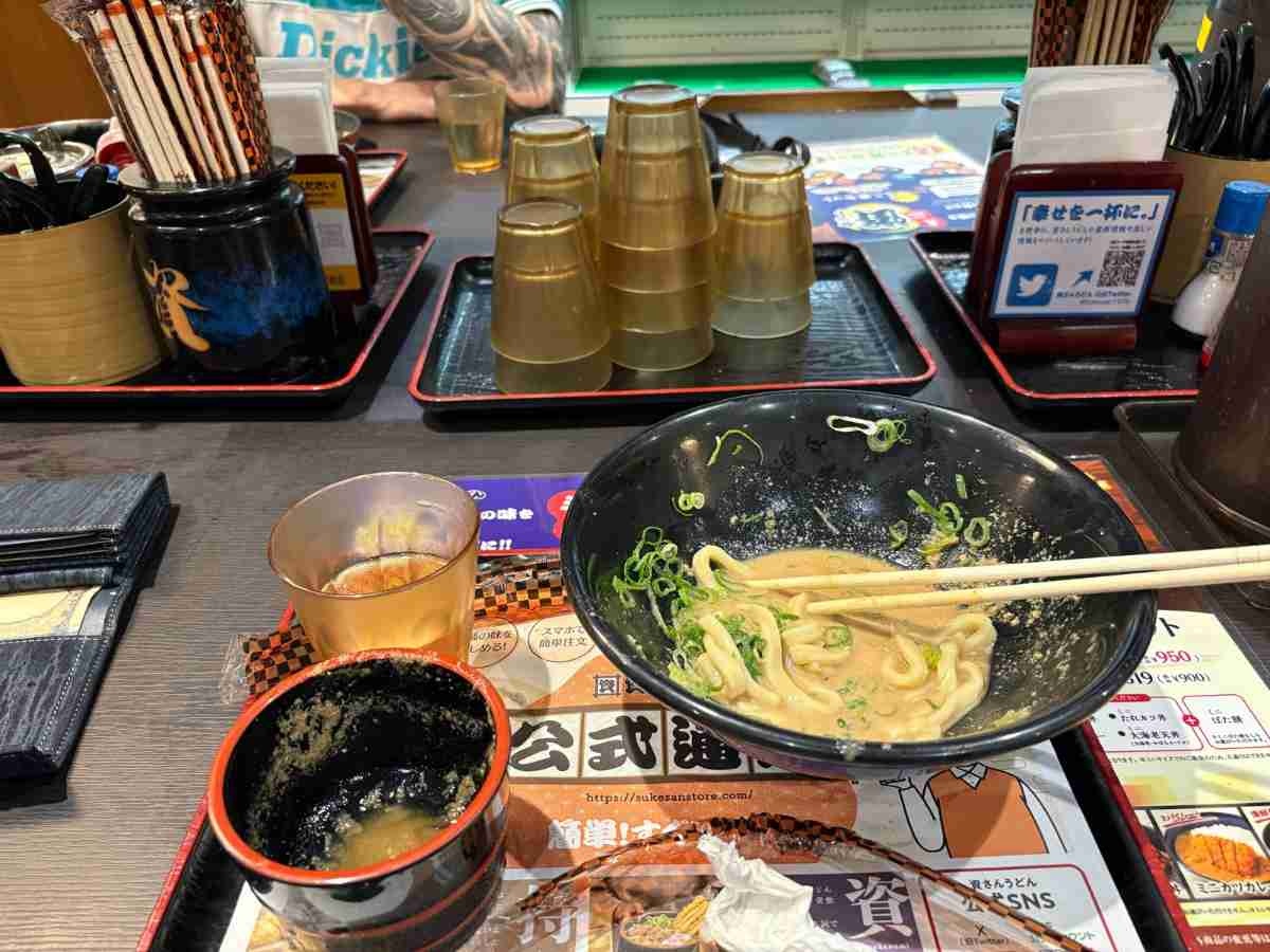 - スケさんうどん行ってオハギ食べないやつは九州から追放されると聞いてたけど注文しなくていいのか
