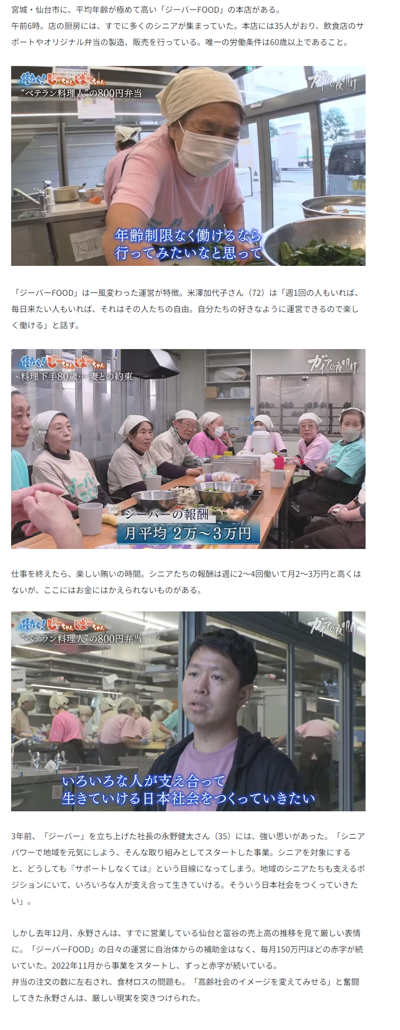起業家が注目する「60歳以上しか雇わない飲食店」、ジーバーFOODの経営者「高齢と無能はイコールではない」→毎月150万円の赤字に転落w