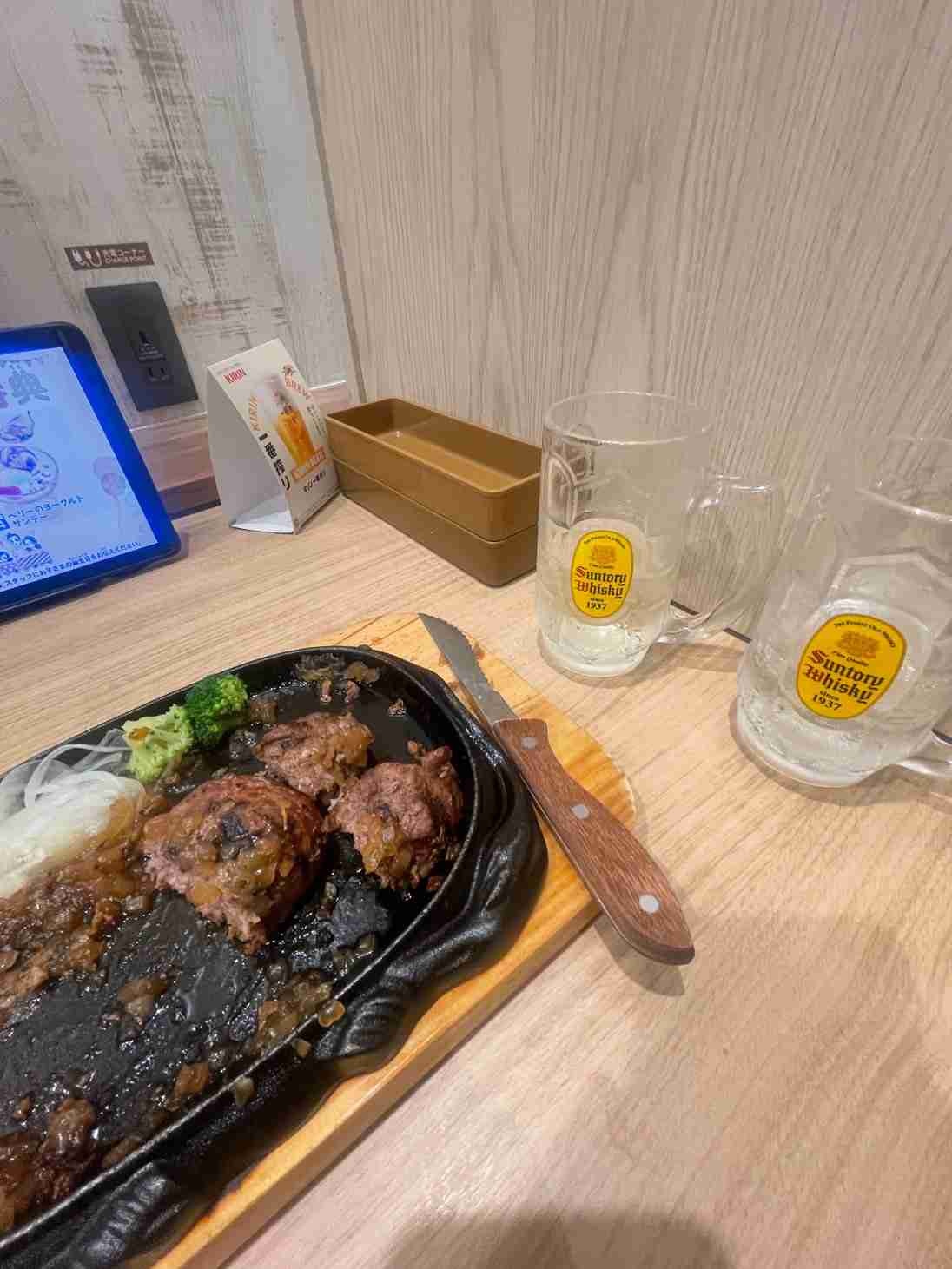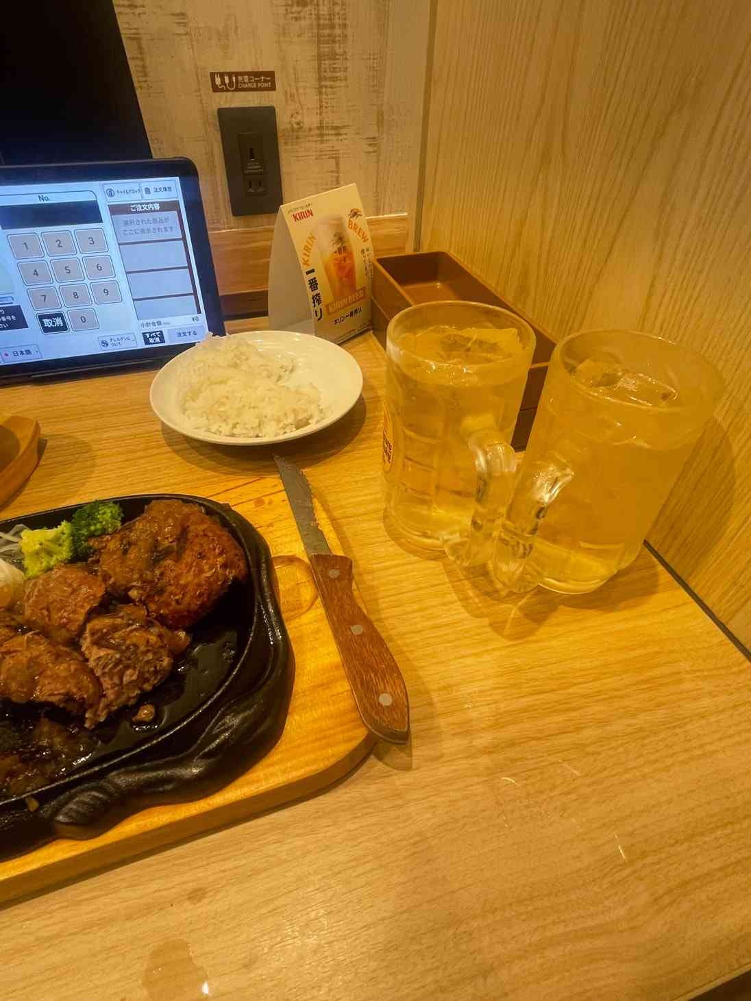 酒とハンバーグ食べるᕙ( 🥺)ᕗ