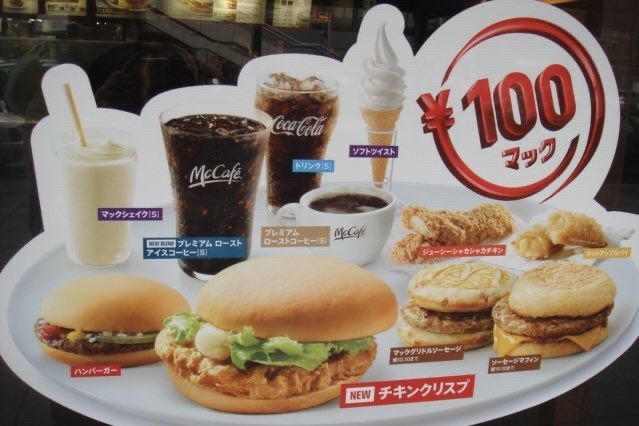- ハンバーガー80円、チーズバーガー100円のイメージだわ