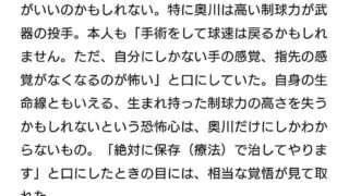 おーぷんなんJ奥川「身体から『切らないでくれよ、まだこの身体で投げられるから』って声が聞こえていた」