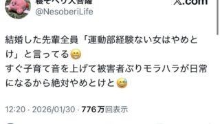 X「チーメス(運動部経験なし女)と結婚しない方がいい」→1.6万いいね