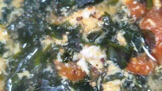 嫌儲 トマトと乾燥わかめとシャンタンと卵でスープみたいなの作った