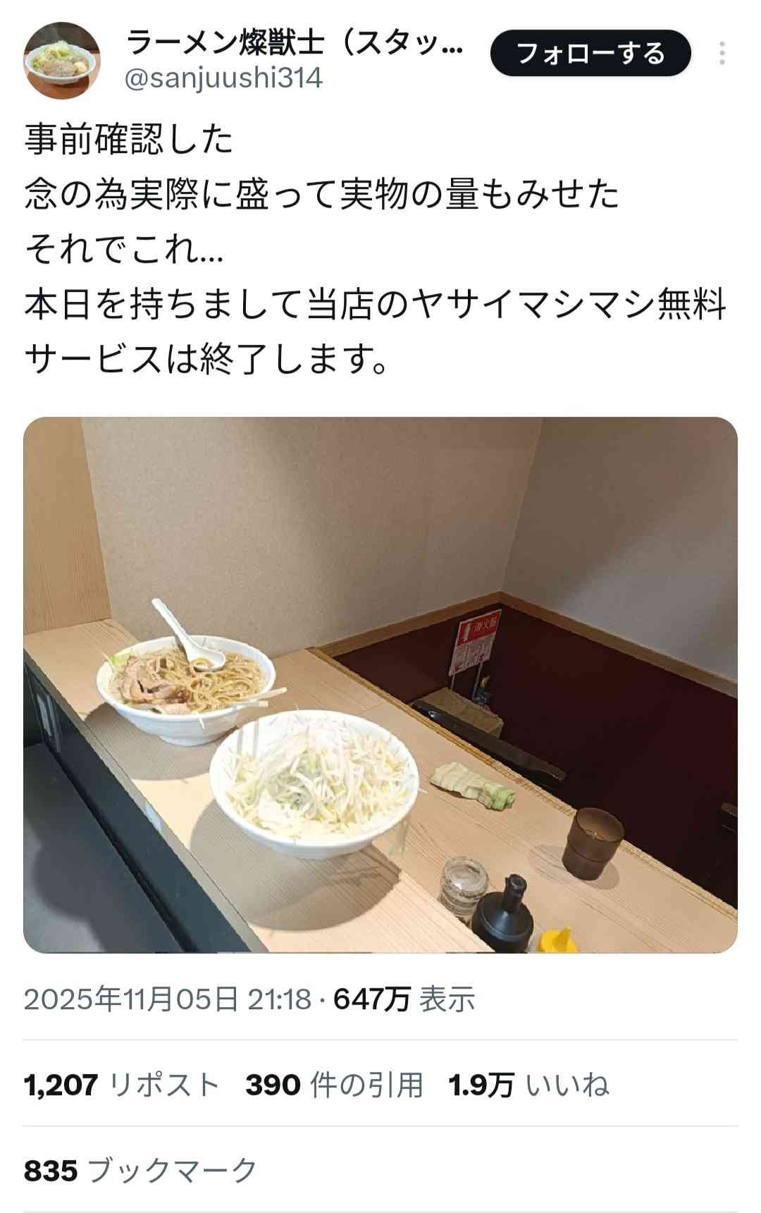 こいつにはもう野菜マシマシ出しませんならわかるけど