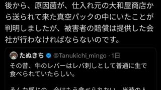 牛レバーで死人を出し規制のきっかけとなった焼肉エビス、ガチのマジで無罪でただの被害者だったwww
