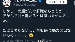 嫌儲 オレ的ゲーム速報JIN、肺ガン発覚