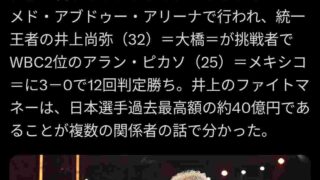嫌儲【嫉妬速報】井上尚弥さん、ヒソカ戦のファイトマネー40億円だったwww